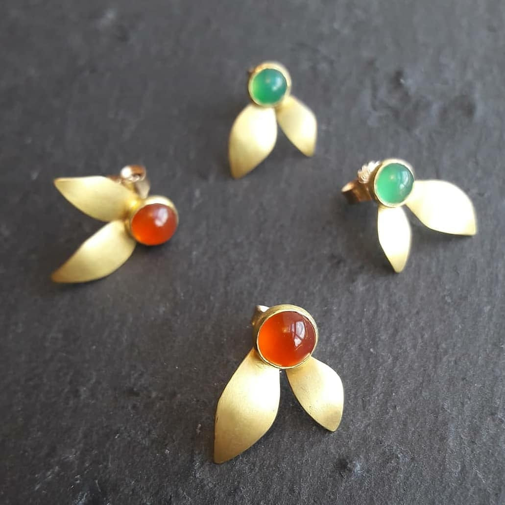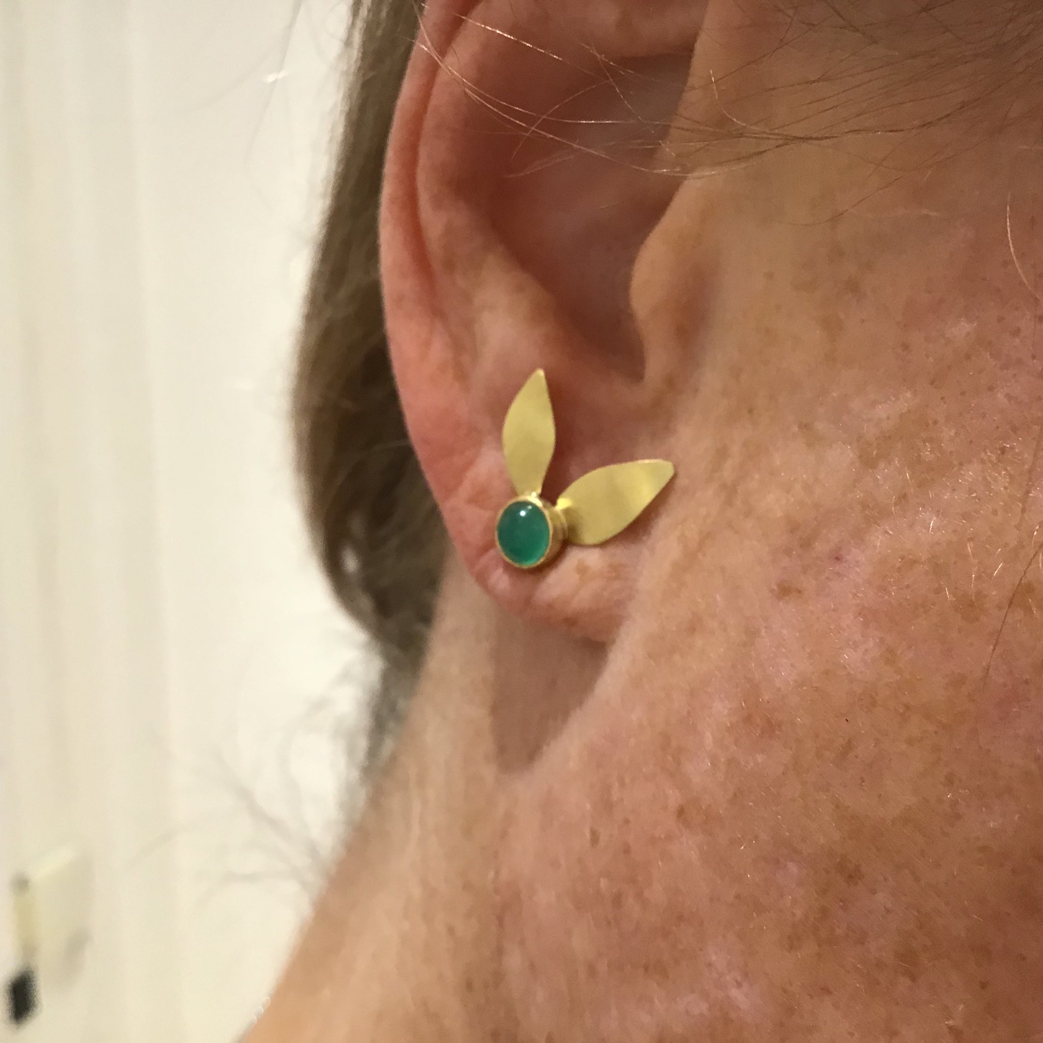 Bladøreringe 18 kt. m. crysopras eller carneol