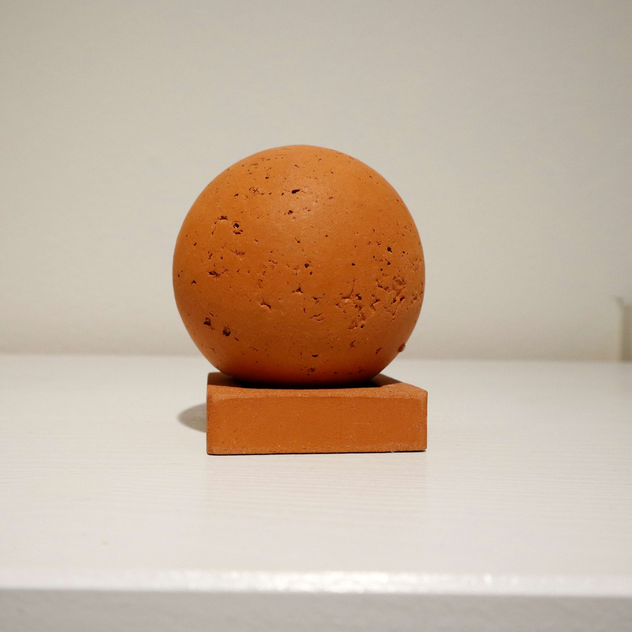 Kuglen er i rødler og er på en kvadratisk konsol i rødler.