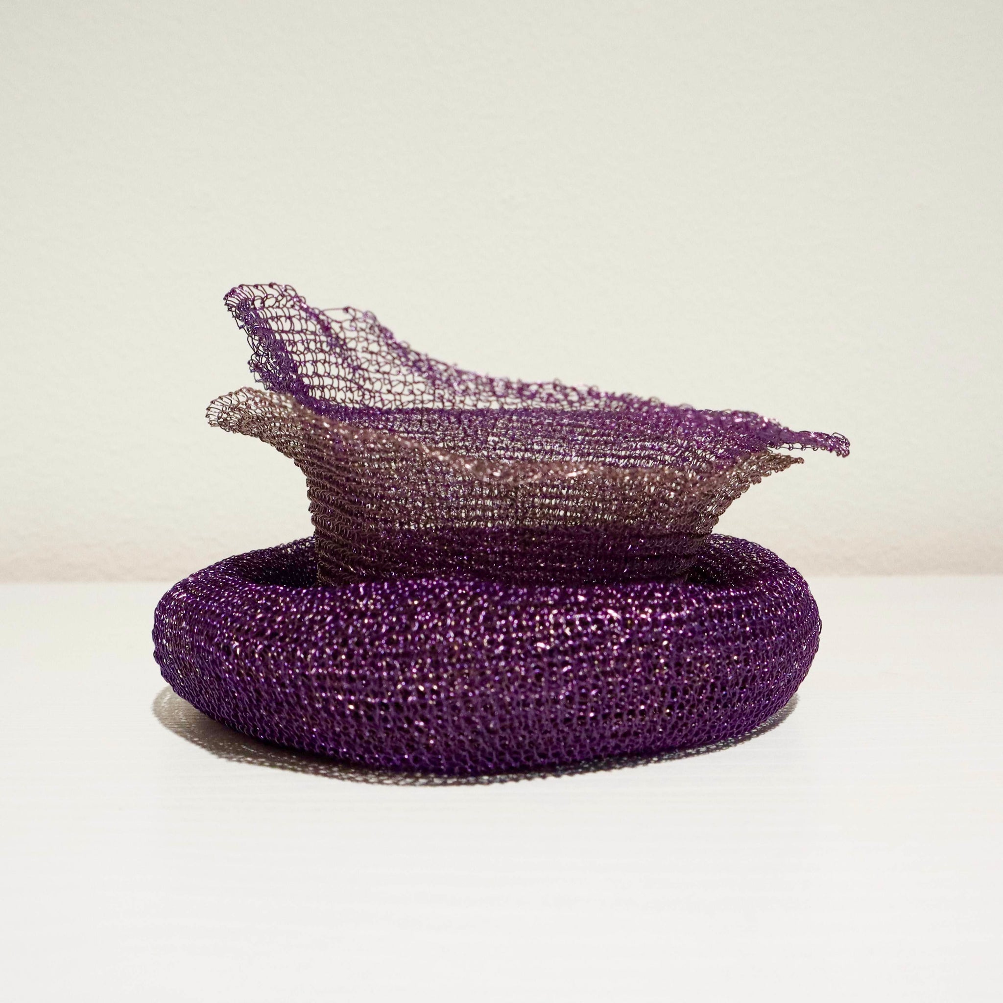 Armbåndet er strikket på Lisbeths eget værksted, af indfarvet kobbertråd.